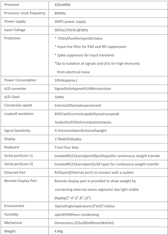 • Customization for RS232 communication string baud rate, parity & format to match with pre-installed indicators (optional)